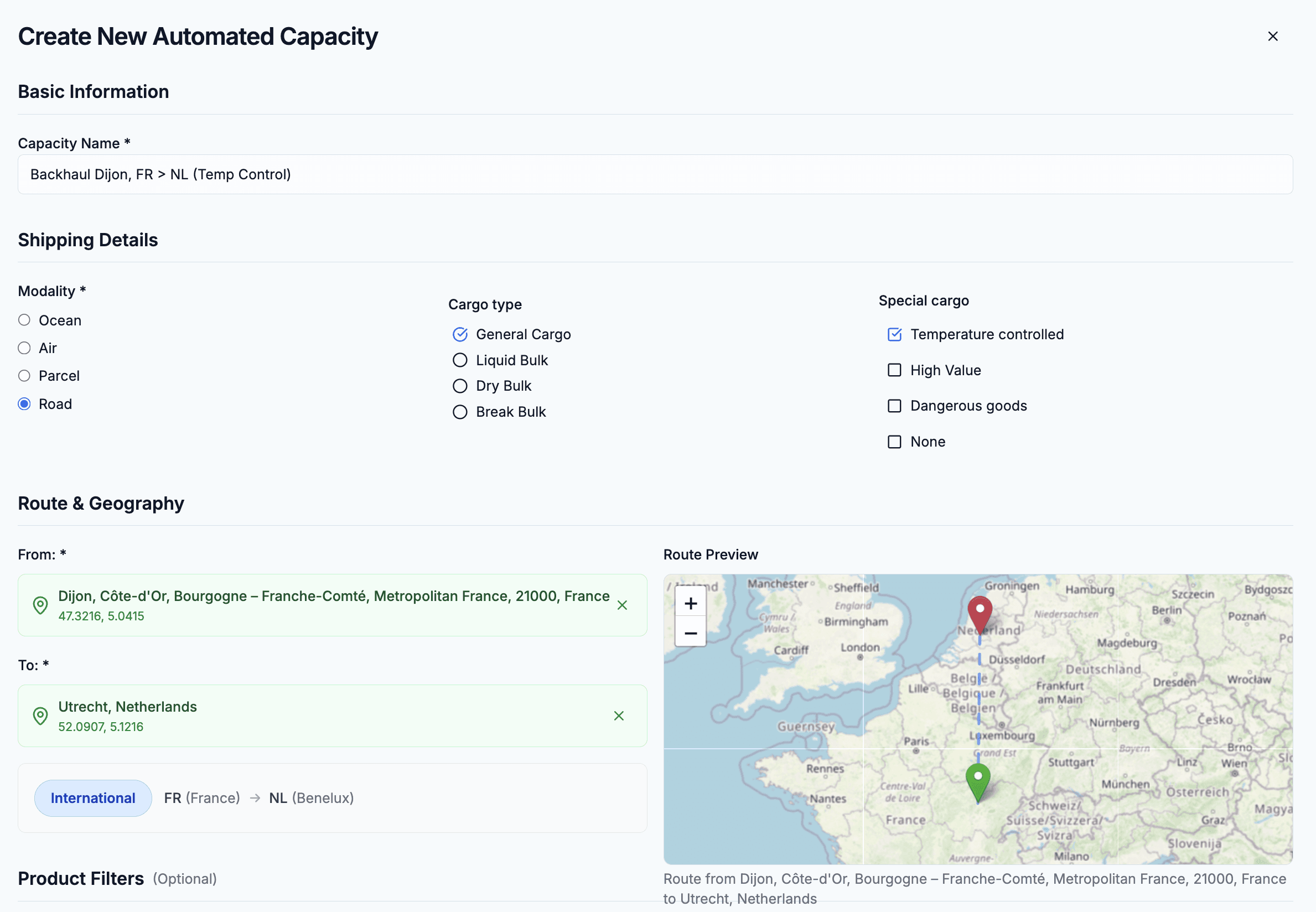 Add optional limitations on cargo types or specific products